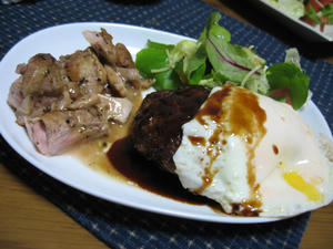 鶏肉のレモンペッパー焼きと目玉焼きをプラスしてみました。
