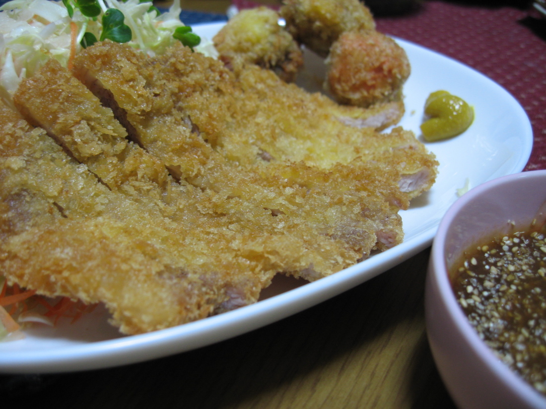 - とんかつとマッシュルームのたらこ乗せフライ
